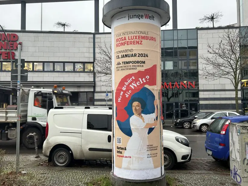 Litfasssäulen Junge Welt 20. Dez. 2023 | Litfaßsäulen Kunde: Verlag 8. Mai GmbH Tageszeitung Junge Welt Schaltung: Berlin Motiv: Junge Welt Agentur: Direktkunde