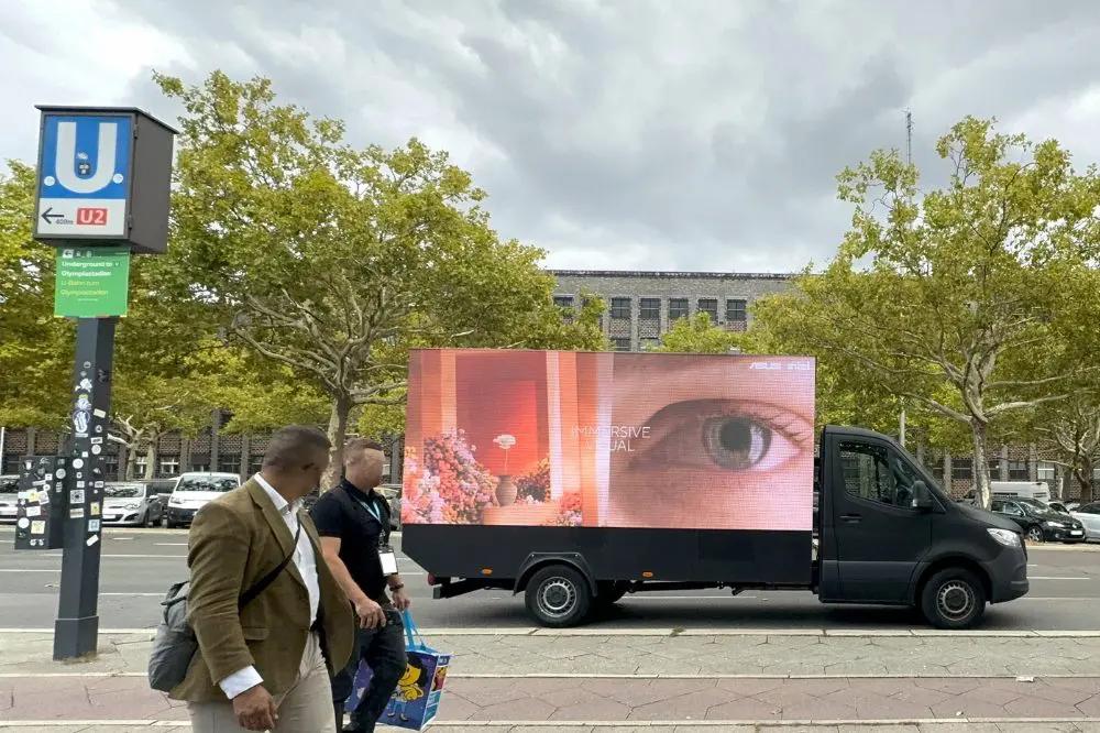 Zur IFA Messe in Berlin buchte ASUS über Ihre Agentur Tiger Party einen digitalen Truck um ihren neuen PC „ Zenbook S“ zu bewerben. Ihre Wahl hierbei den Video Truck als Medium zu nutzen ist super, da so auch alle Besuch der IFA, die Kampagne rund um die Messe sehen können.